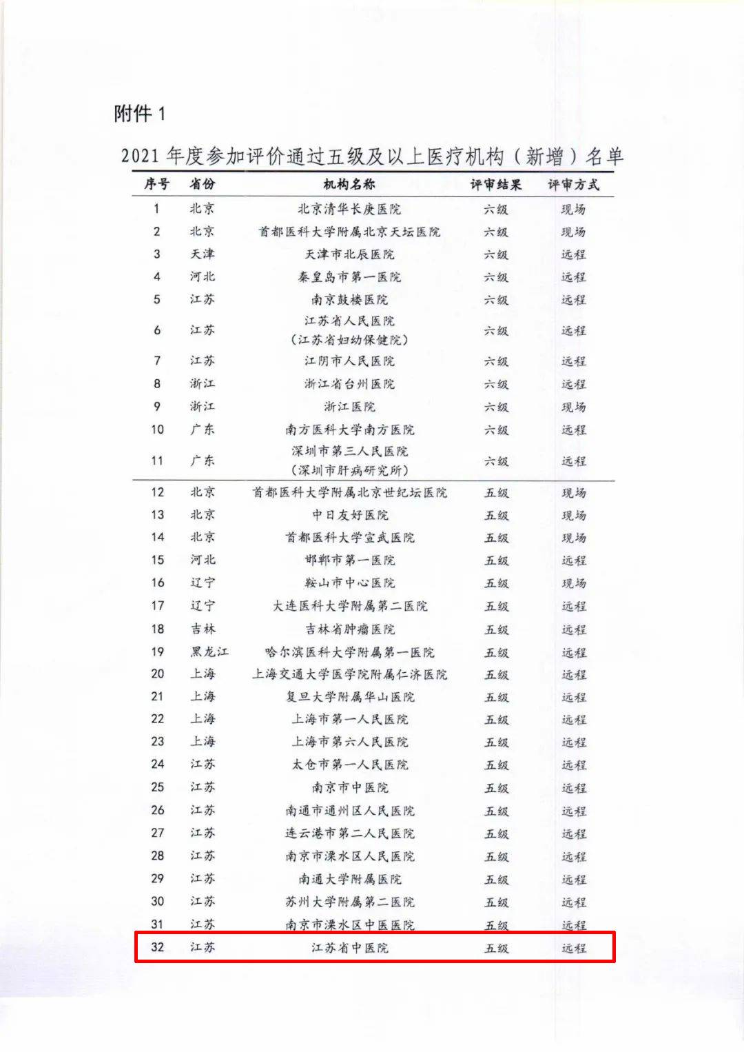 《通知》公示了2021年度参加评价通过5级及以上医疗机构(新增)名单,全国共有11家通过六级评审,60家通过五级评审,其中,由亿万28网页在线玩-亿万28入口网页版-亿万28网页版网址-亿万28赌博-亿万28下载链接-亿万网站pg-亿万e网址pg-亿万28赏金女王科技服务支持的江苏省中医院、浙江大学医学院附属第四医院顺利通过电子病历系统功能应用水平分级评价五级评审。在此,我们表示热烈祝贺!
