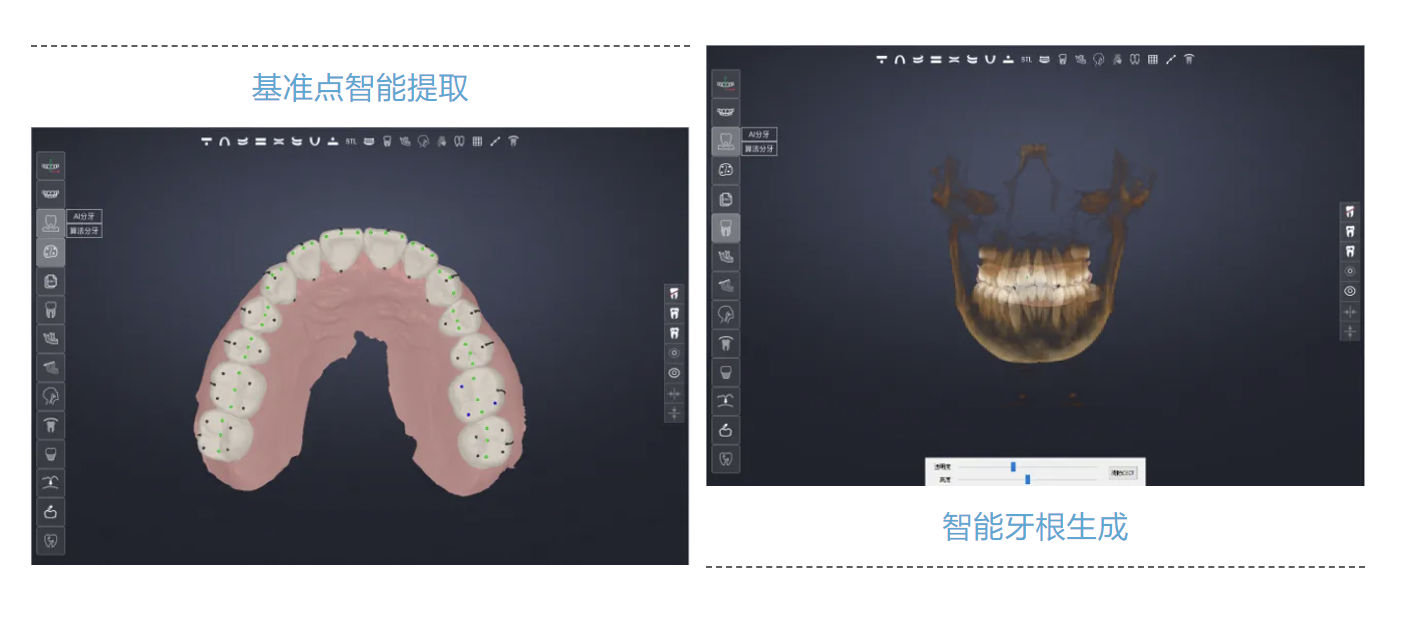 此外,面向口腔专科领域,基于AI赋能患者就诊全流程智慧服务、全生命周期健康管理等场景,并针对传统牙科诊疗中的基准点标注、牙根设计等环节的提质增效进行了重点研发攻关,实现在基准点标准环节仅需25秒完成全颌定位,准确率超过98%,并基于双重校验机制确保轮廓绘制的亚毫米级精度,临床一致性达行业领先水平。