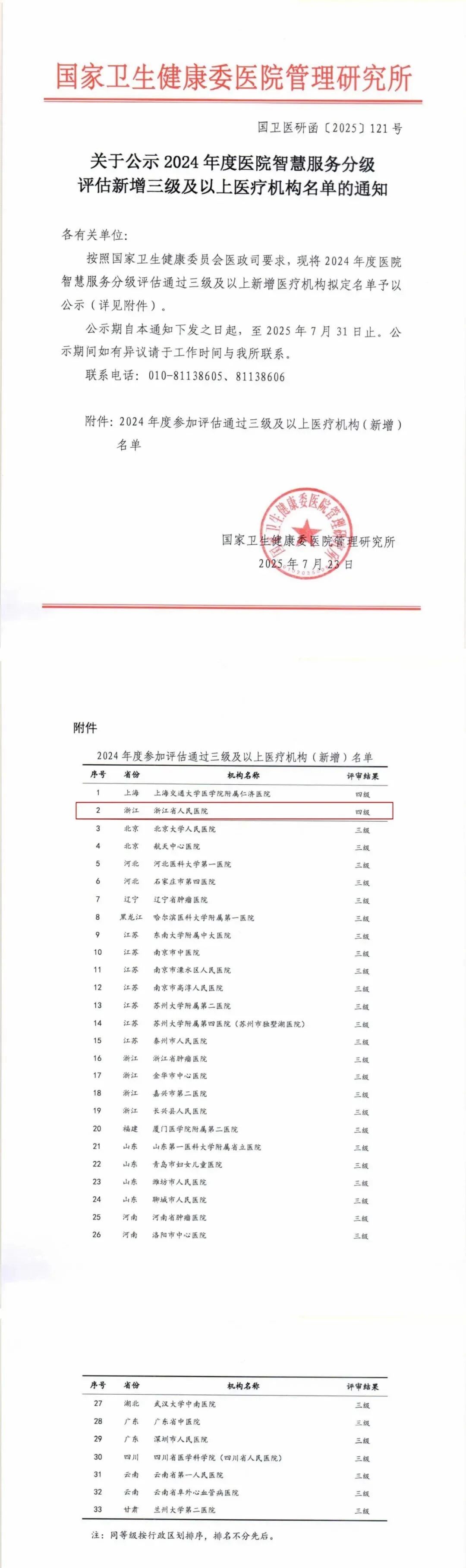 近日,国家卫生健康委医院管理研究所公布了《2024 年度医院智慧服务分级评估新增三级及以上医疗机构名单》,浙江省人民医院凭借卓越的智慧服务建设成果荣耀上榜,获评四级!值得关注的是,本年度全国仅两家医院获此认定。在此,我们表示热烈祝贺!