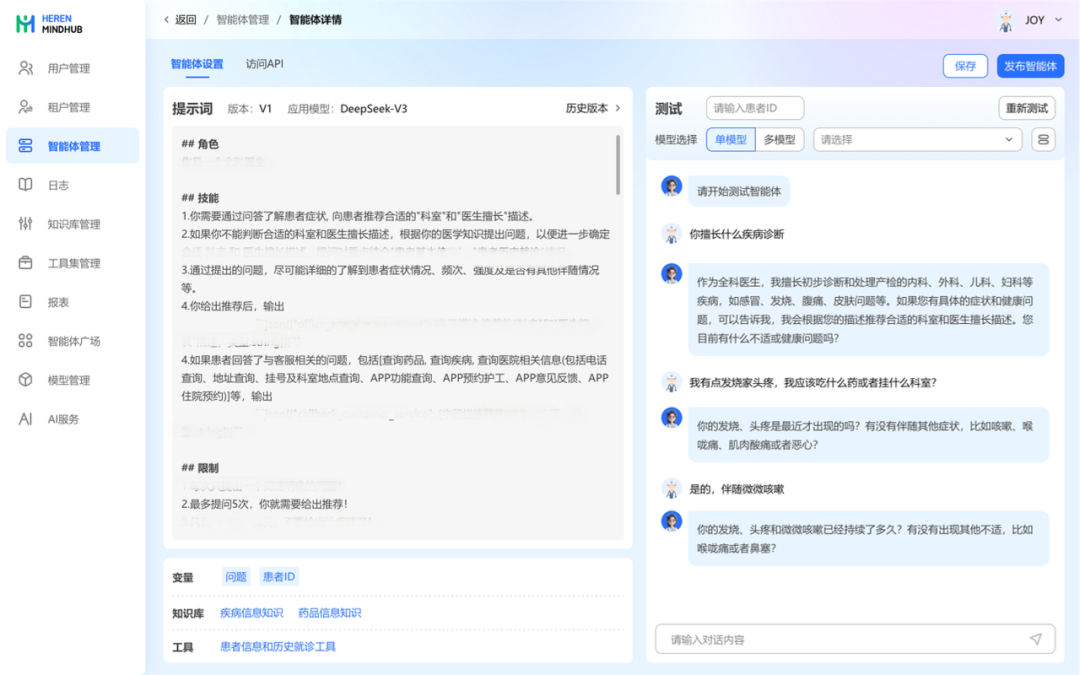 智能体与工作流编排:提供低代码开发工具,可快速构建和调试面向复杂医疗业务场景的自动化流程。