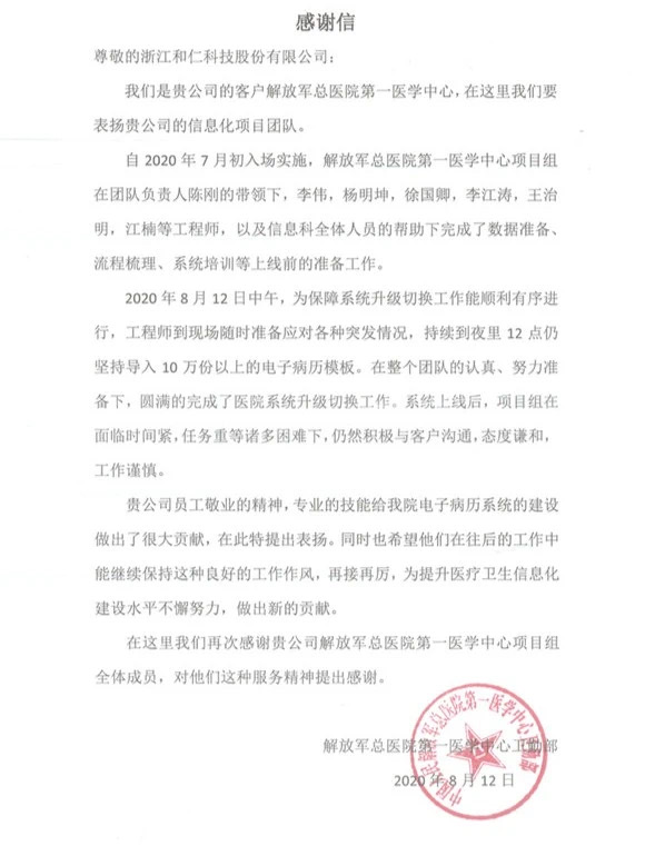 近期, 亿万28网页在线玩-亿万28入口网页版-亿万28网页版网址-亿万28赌博-亿万28下载链接-亿万网站pg-亿万e网址pg-亿万28赏金女王(以下简称“亿万28网页在线玩-亿万28入口网页版-亿万28网页版网址-亿万28赌博-亿万28下载链接-亿万网站pg-亿万e网址pg-亿万28赏金女王科技”)收到了来自中国人民解放军总医院第一医学中心的感谢信,表扬了亿万28网页在线玩-亿万28入口网页版-亿万28网页版网址-亿万28赌博-亿万28下载链接-亿万网站pg-亿万e网址pg-亿万28赏金女王科技的专业能力及在项目实施过程中的敬业精神。