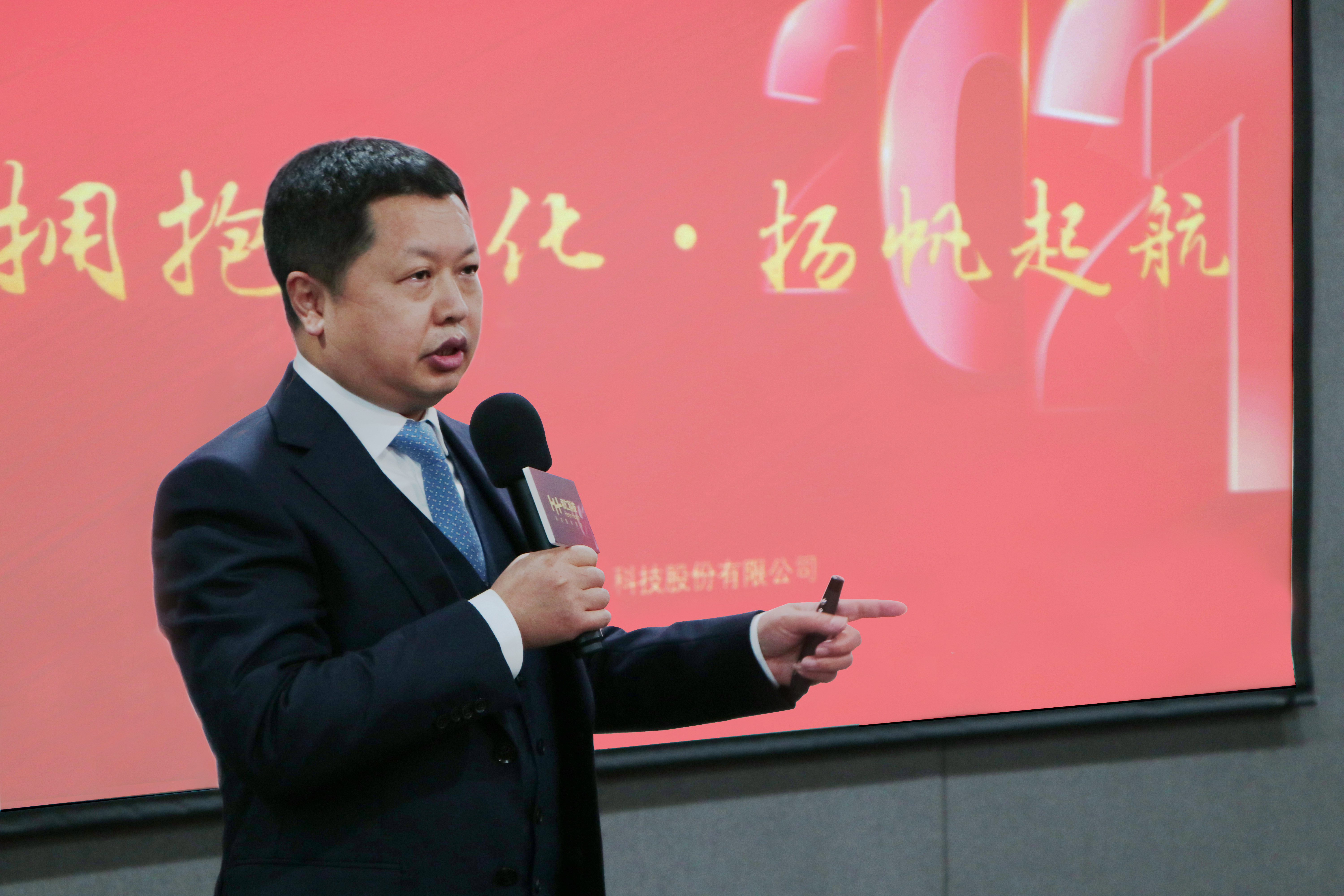 总裁戴泽宇代表公司经营层对员工的付出表示感谢,他回顾了2020年的工作目标,指出了各板块/部门年度工作的亮点和不足,对2021年的工作给出了明确的目标,提出了“建机制、补短板、树能力、重效能”的工作思路。最后,他发表了新年寄语并祝公司全体员工新年快乐。